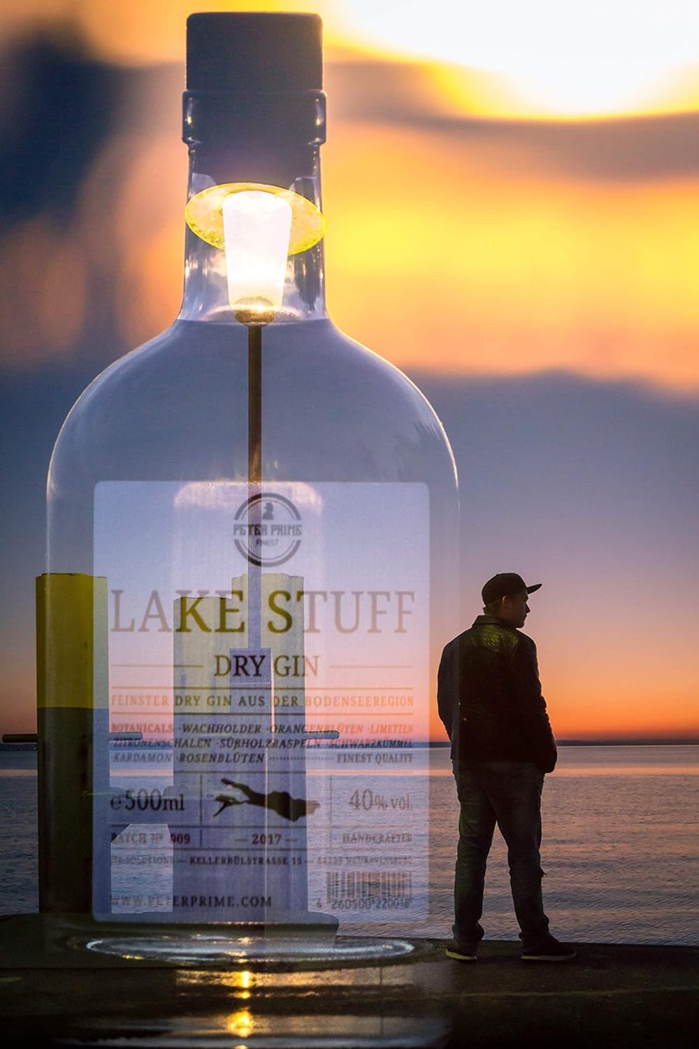 Lake Stuff Gin von Peter Prime Finest® Hergestellt am Bodensee -Dry Gin Aus Deutschland – fruchtiger Geschmack – einzigartige süßliche Note -0,5 Liter
